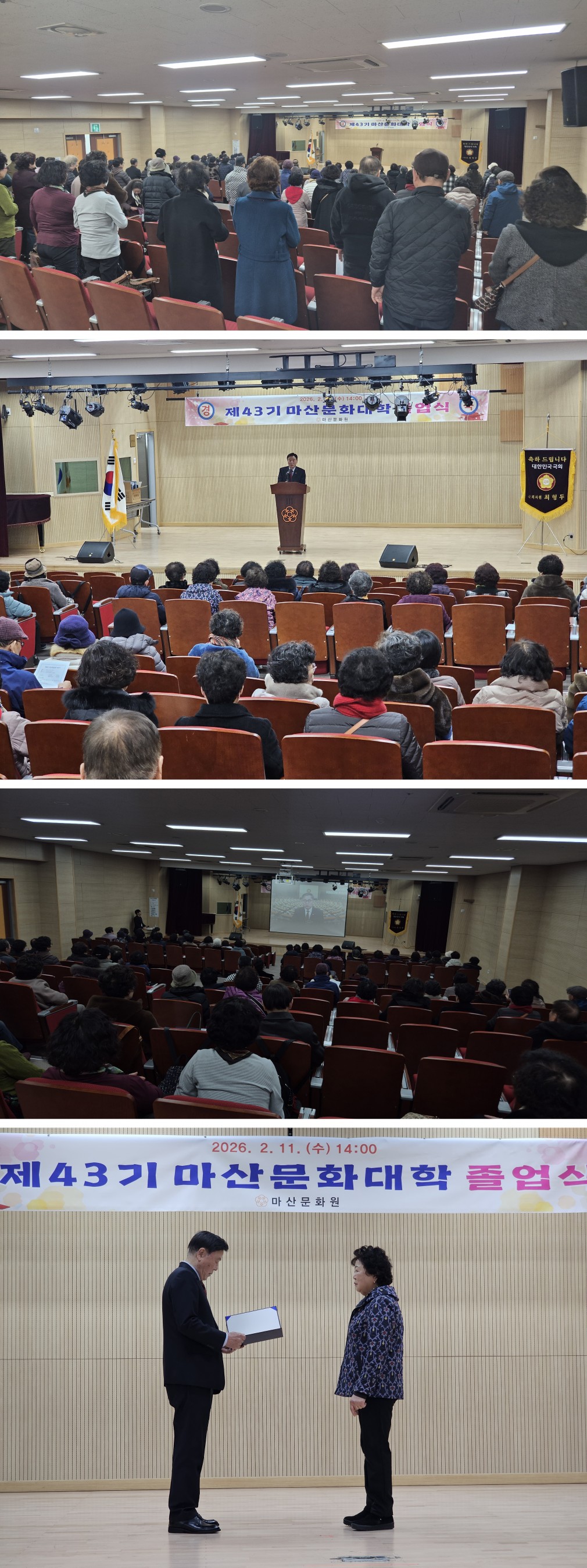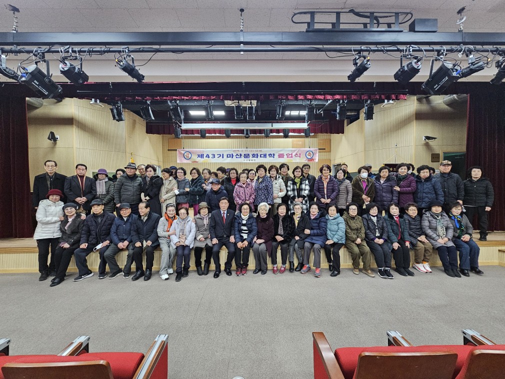 2025 43기 문화대학 졸업식 페이지 정보 작성자 마산문화원 댓글 0건 조회 25회 작성일 26-03-05 10:20 본문 일 시: 2026년 2월 11일 수요일 목록 이전글2026 44기 문화대학 입학식 및 행복한 노후 준비하기 26.03.05 다음글우리나라의 경전? 25.12.12