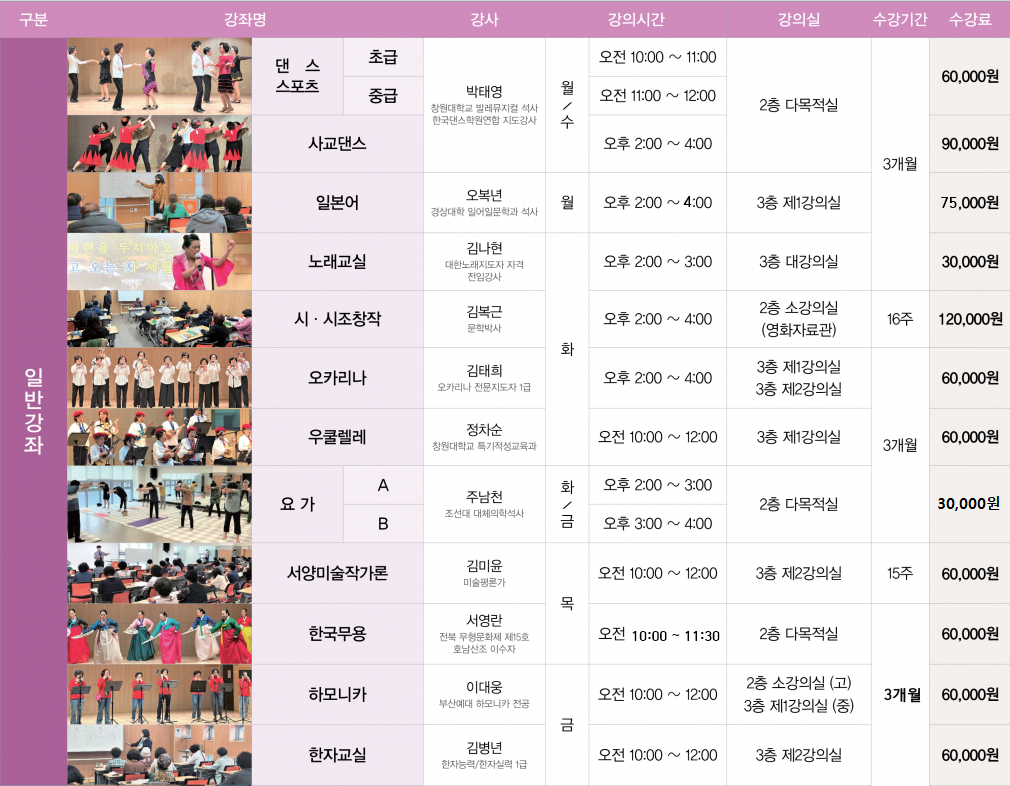① 과정별 수강인원이 미달일 경우 폐강될 수 있습니다.