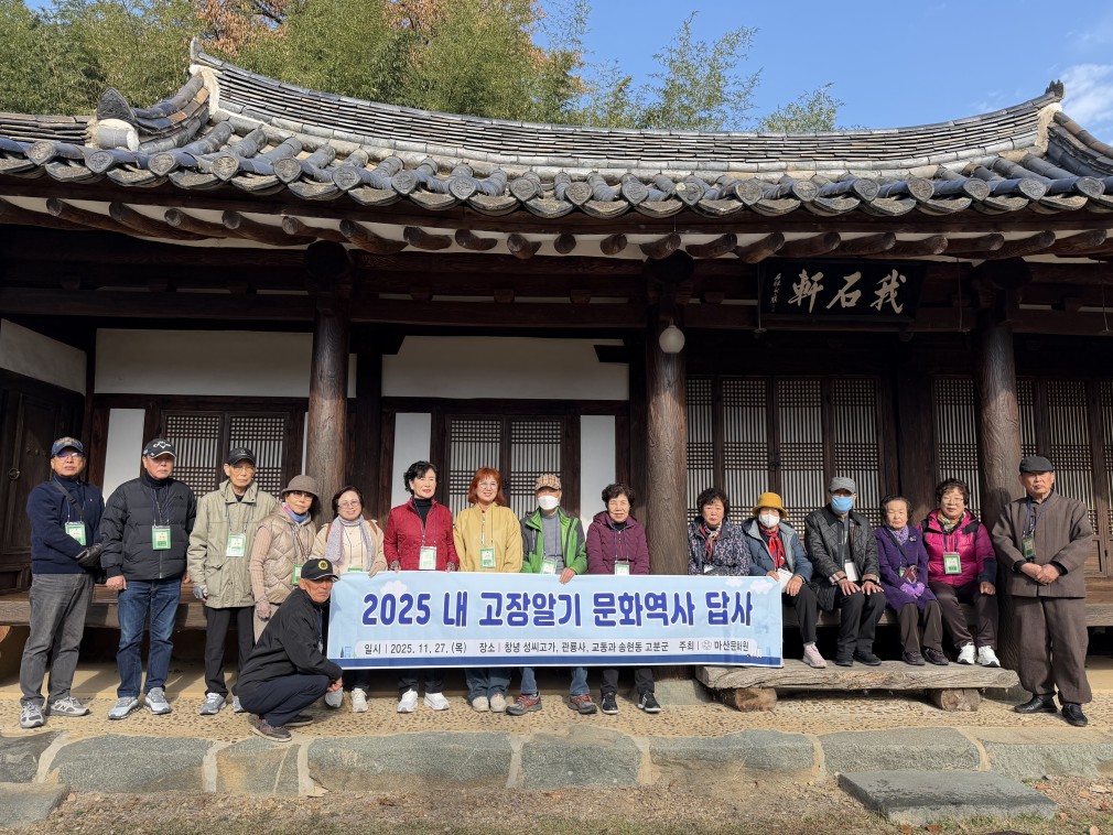 2025 내 고장 답사 (창녕) 페이지 정보 작성자 마산문화원 댓글 0건 조회 112회 작성일 25-11-28 09:52 본문 일 시 : 2025. 11. 27. (목) 장 소 : 창녕성씨고가 > 창녕 교동과 송현동 고분군 > 창녕 관룡사 목록 이전글제5회 마산문화원 “낭만과 명소” 스마트폰 아마추어 사진공모전 시상식 및 전시회 25.12.19 다음글2025 향토문화유적답사 대구 25.11.13