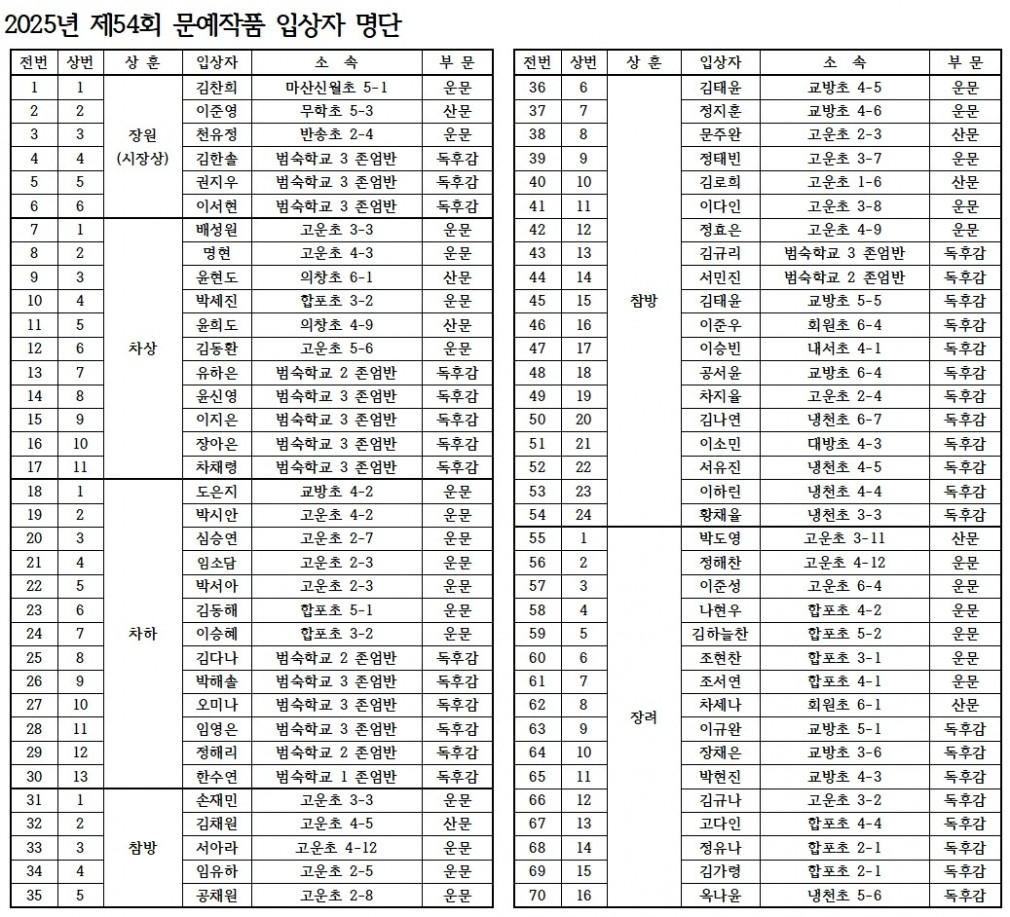 - 2025년 제54회 문예작품 입상자 명단 홈피.hwp (90.0K) 37회 다운로드 | DATE : 2025-11-24 09:57:26