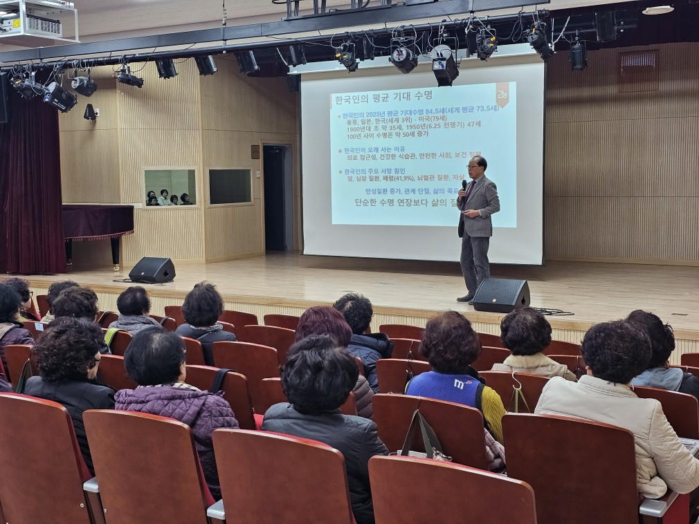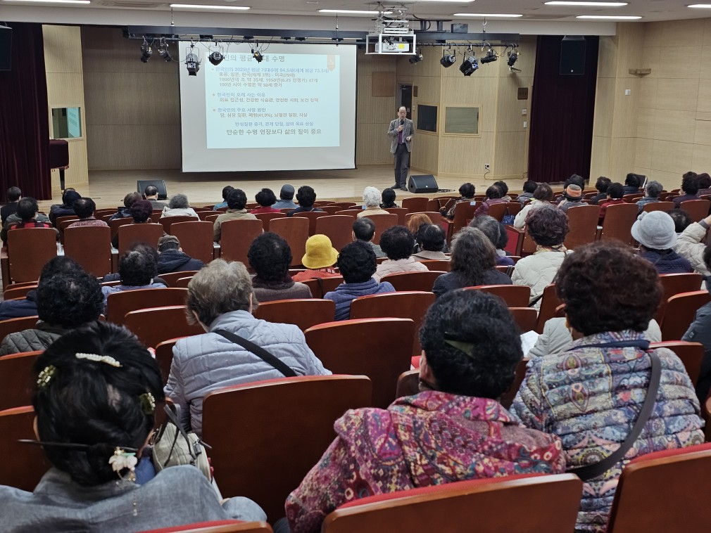 100세 시대, 70세 이후를 어떻게 살 것인가? 페이지 정보 작성자 마산문화원 댓글 0건 조회 91회 작성일 25-11-20 09:27 본문 일시 : 2025년 11월 19일 (수) 강사 : 김복근 목록 이전글웃음과 칭찬으로 멋진 인생 25.11.28 다음글족보의 중요성 25.11.06
